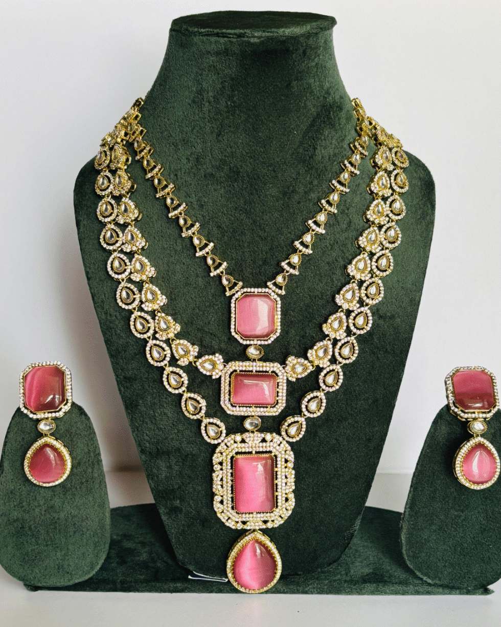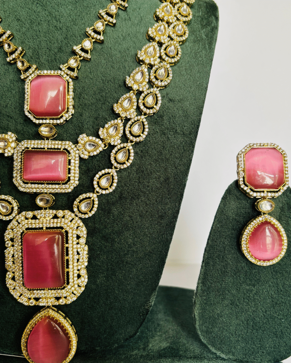 👑 Coordinated Statement Earrings – Featuring a dual stone setting that mirrors the necklace, ensuring a complete, regal look for any occasion.